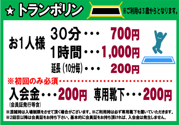 アミパトランポリン規約,注意・新規申し込み