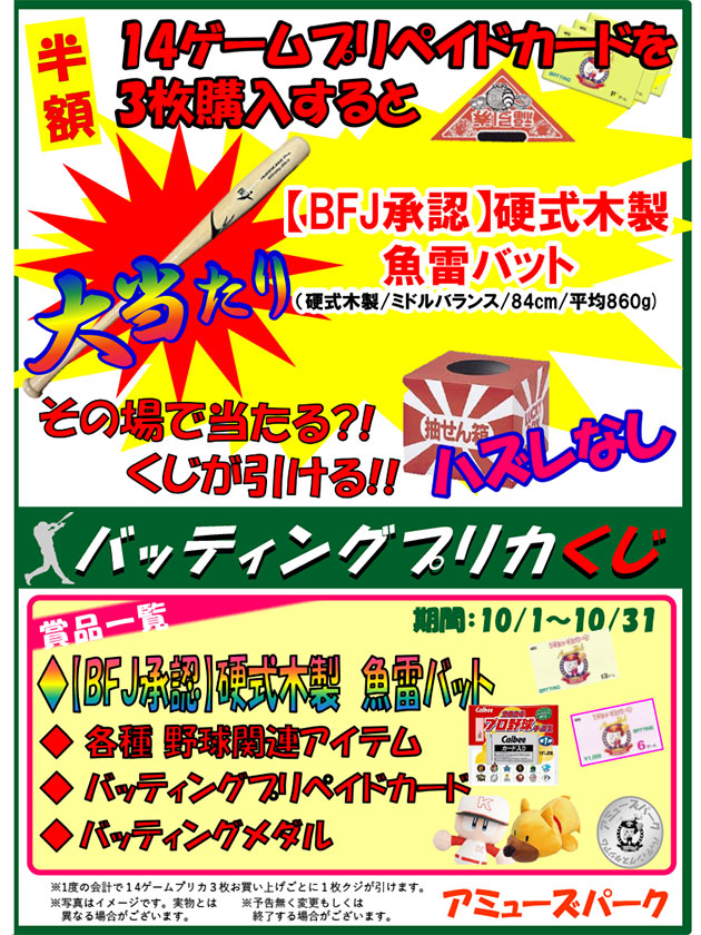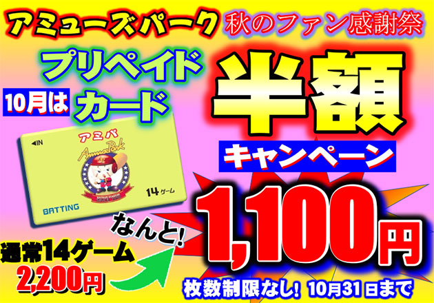 バッティングプリペイドカード半額月間!!14ゲームプリカが1,100円!!
