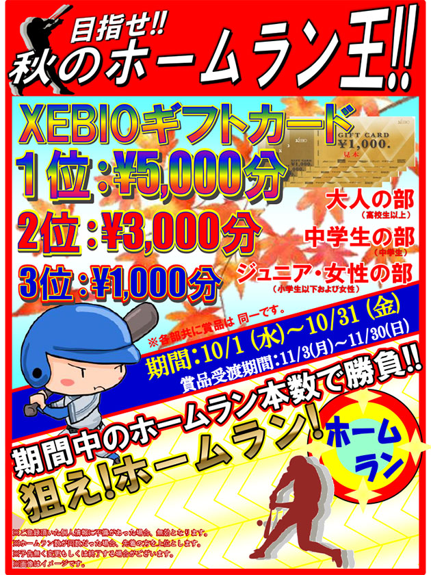 上位入賞でゼビオギフトカードプレゼント!!アミパのホームラン王を目指せ!!