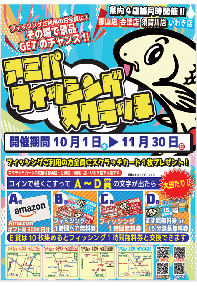 スーパーフィッシング 須賀川・会津・郡山・いわき 4店舗合同釣りスクラッチ