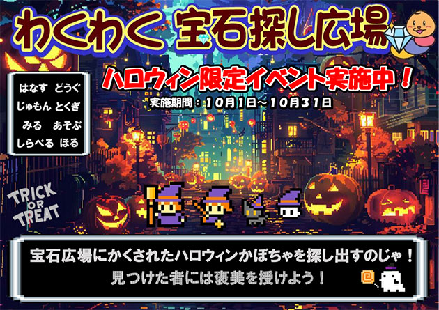 ★宝石探し広場ではカボチャチャームを見つけるとお菓子がもらえちゃうよ♪
