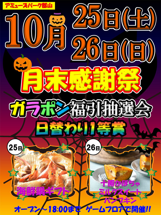 アミパ郡山恒例月末感謝祭 10月は25・26日開催!!