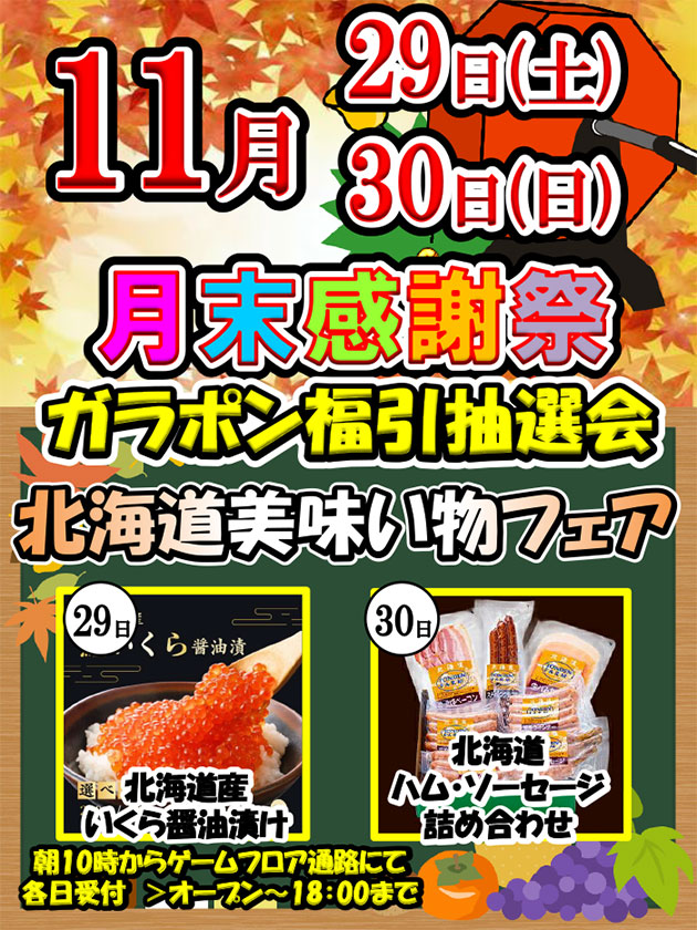 アミパ郡山恒例月末感謝祭 11月は29・30日開催!!