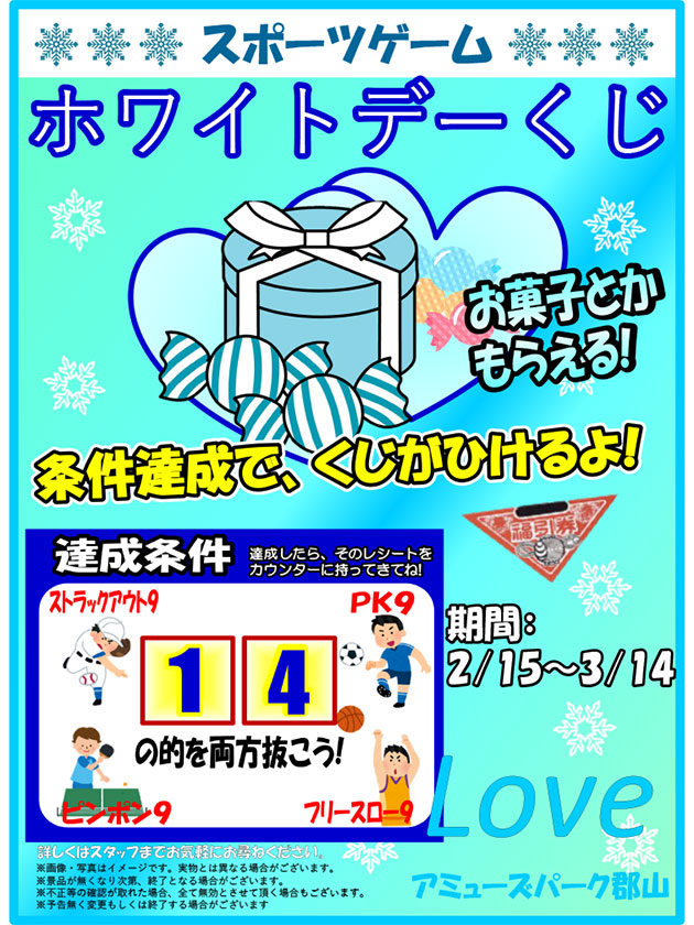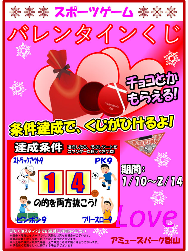 スポーツゲーム バレンタイン&ホワイトデーくじ開催!!