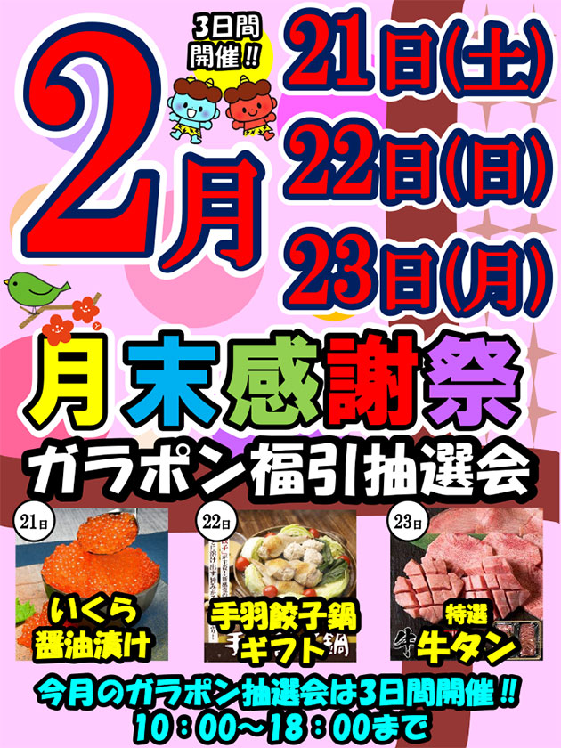 アミパ郡山恒例月末感謝祭 2月は21・22・23日の3日間開催!!