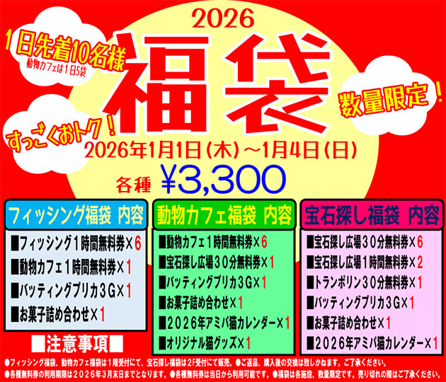 ★フィッシング、動物カフェ、宝石探し広場でも先着で福袋をご用意!!こちらも間違いなく100%お買い得です!!
