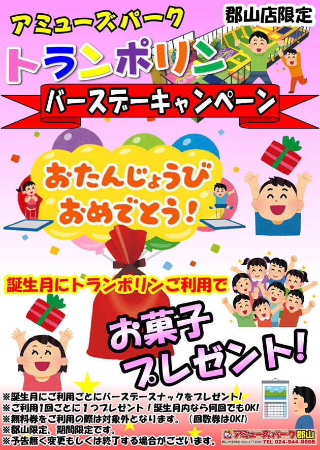 ★誕生月にトランポリンをご利用でバースデイスナックをプレゼント♪